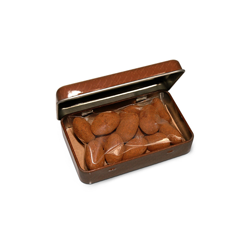 sladkosti, plechová krabička s mandlemi v čokoládě Praha, mandle v čokoládě Praha, mandle v čokoládě a skořici Praha