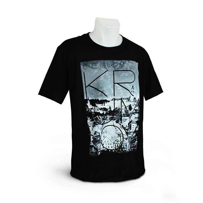 Dominantou motivu tohoto trička je Krumlovský zámek, dále kostel sv. Víta, bývalý kostel sv. Jošta a Budějovická brán.