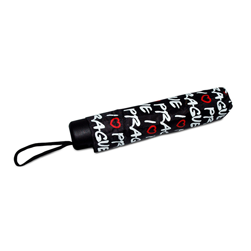 Skládací mini deštník s celoplošným potiskem I love Prague. Průměr: 95 cm