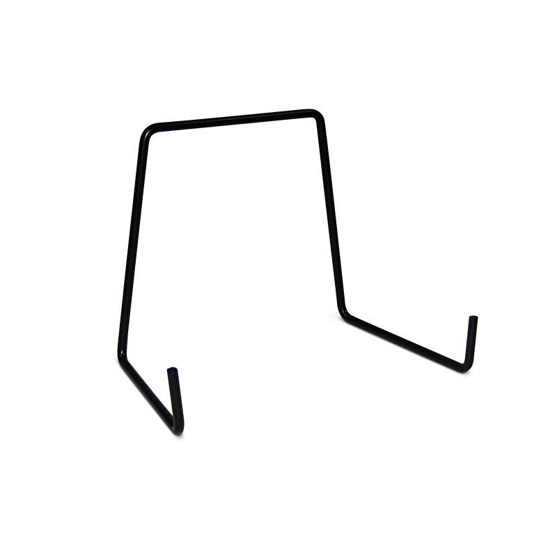 Malý kovový stojánek na talíř o průměru 15 cm.