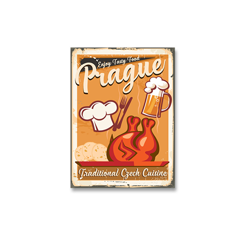 Samolepka s typickou českou kuchyní - kachna a pivo.