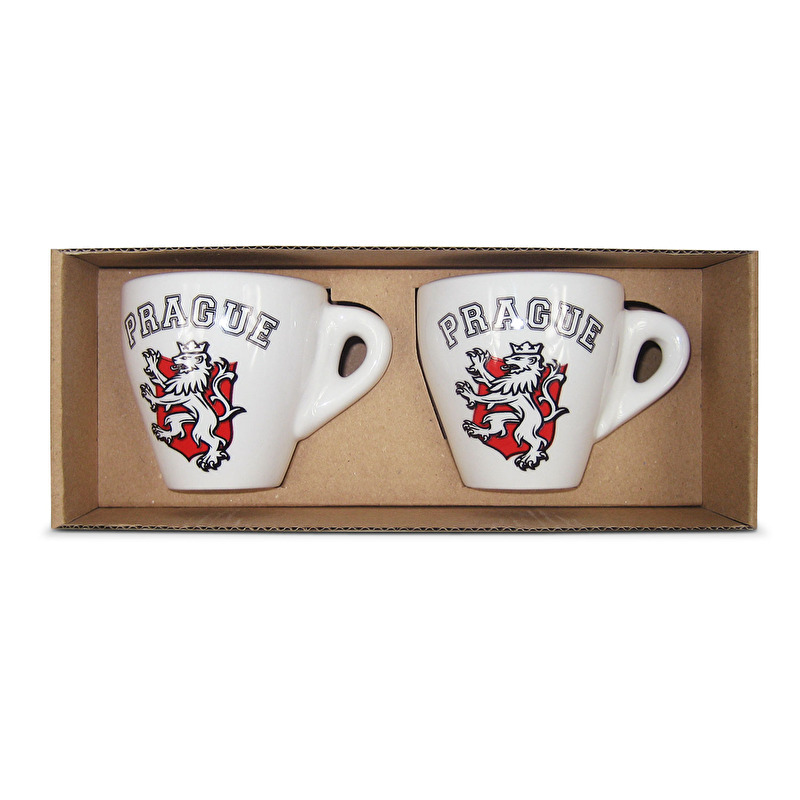 Sada dvou porcelánových hrnků na kávu s obrázkem znaku Českého lva.