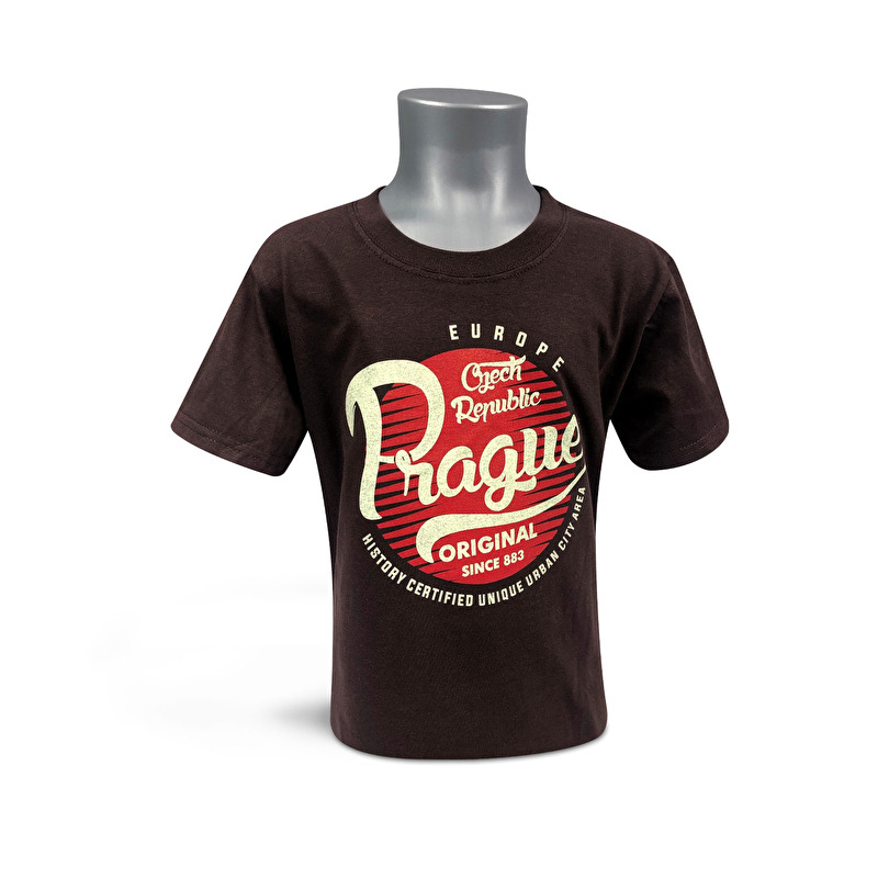 Tmavě hnědé dětské bavlněné tričko v pin-up stylu s motivem.