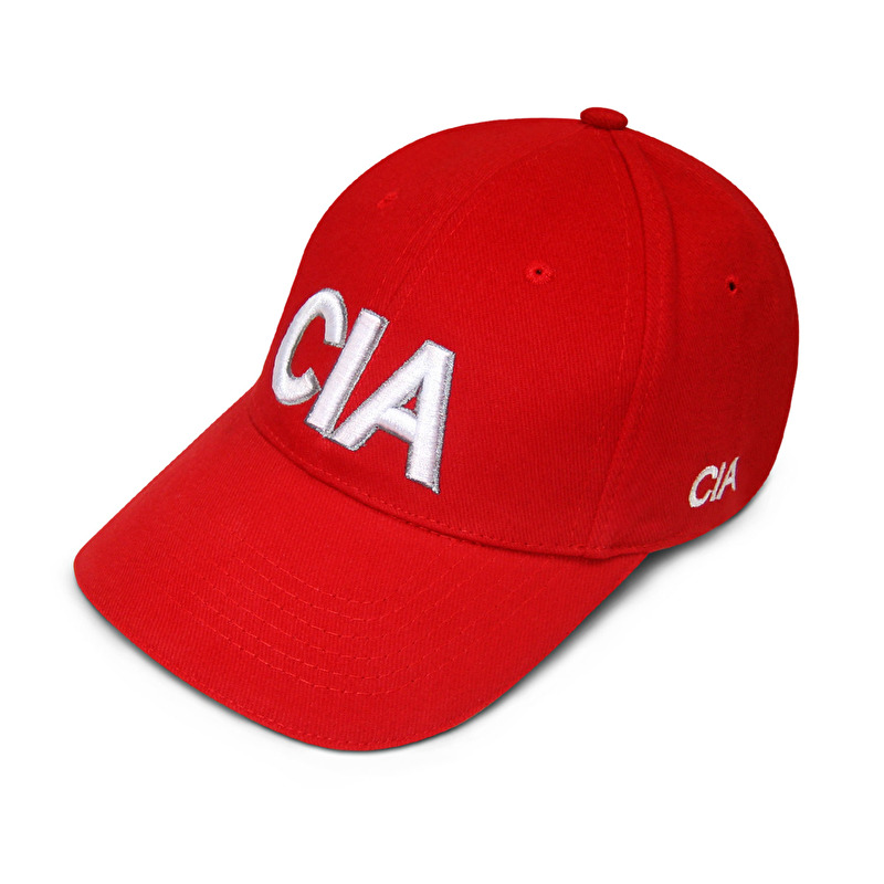 Baseballová čepice s výšivkou CIA. Výšivka je nad kšiltem i po straně čepice.