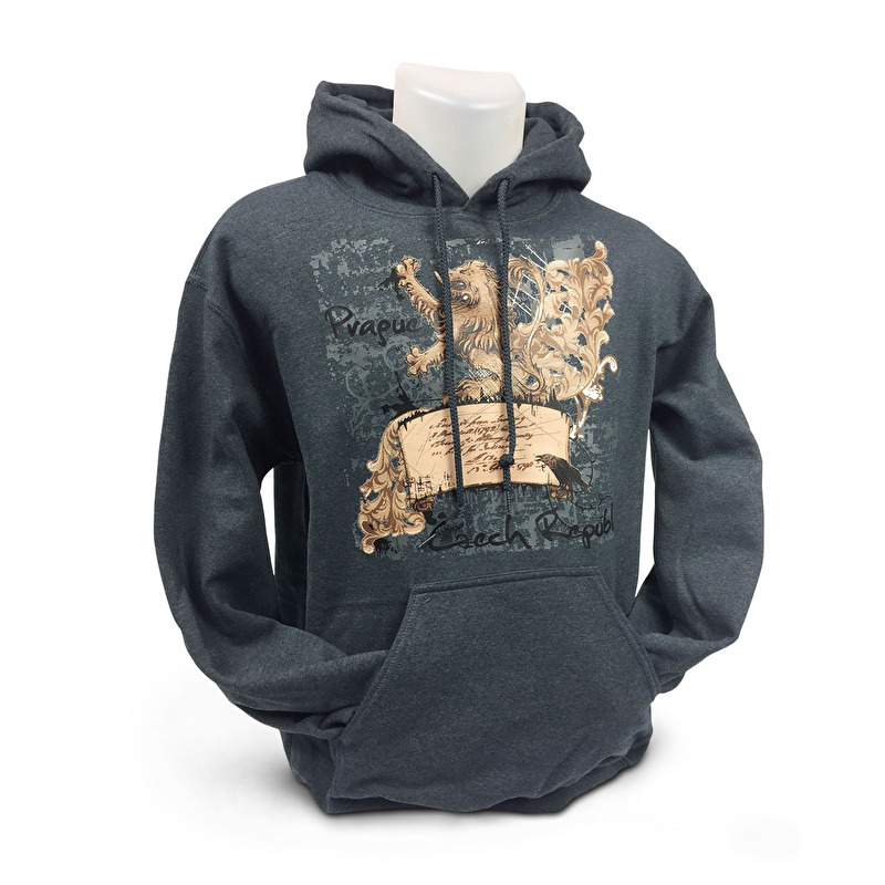 Unisex mikina s kapucí a klokaní kapsou. Kapuce je s podšívkou a se stahovací šňůrkou. Rukávy jsou vsazené, klokaní kapsa má dvojité švy. Motivem mikiny je Český lev, který je znakem Čech již od 13.století. Znak je také nazýván jako Malý státní znak.
