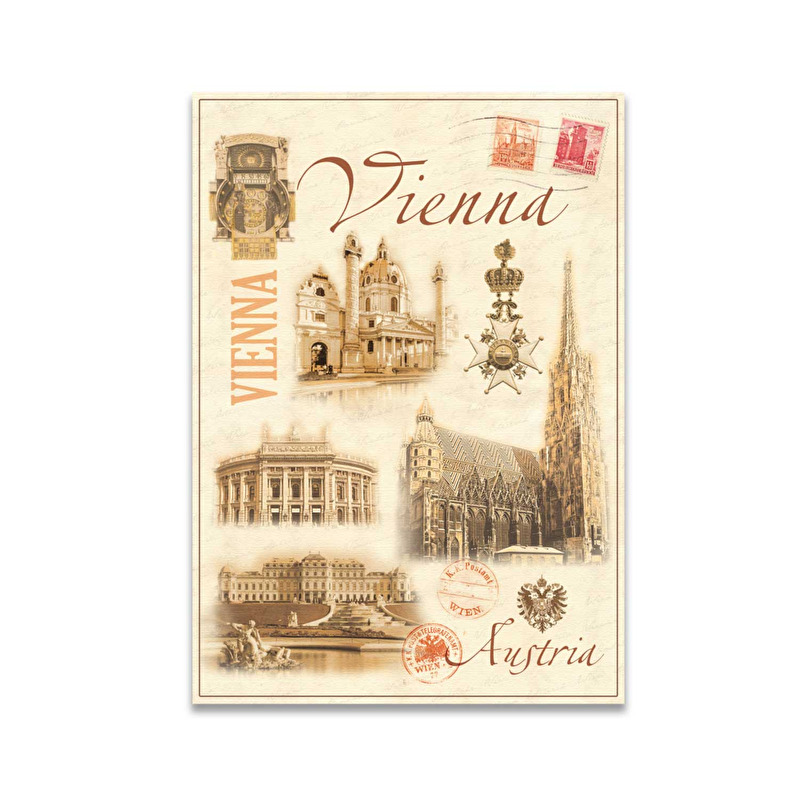 Dřevěný magnet se 3D nápisem Vienna.