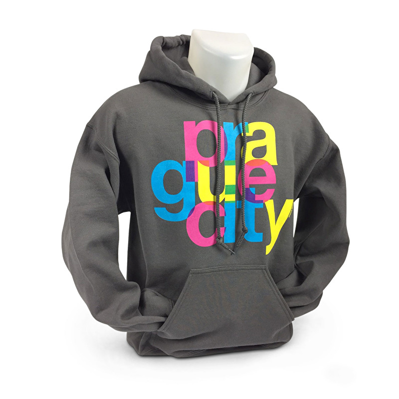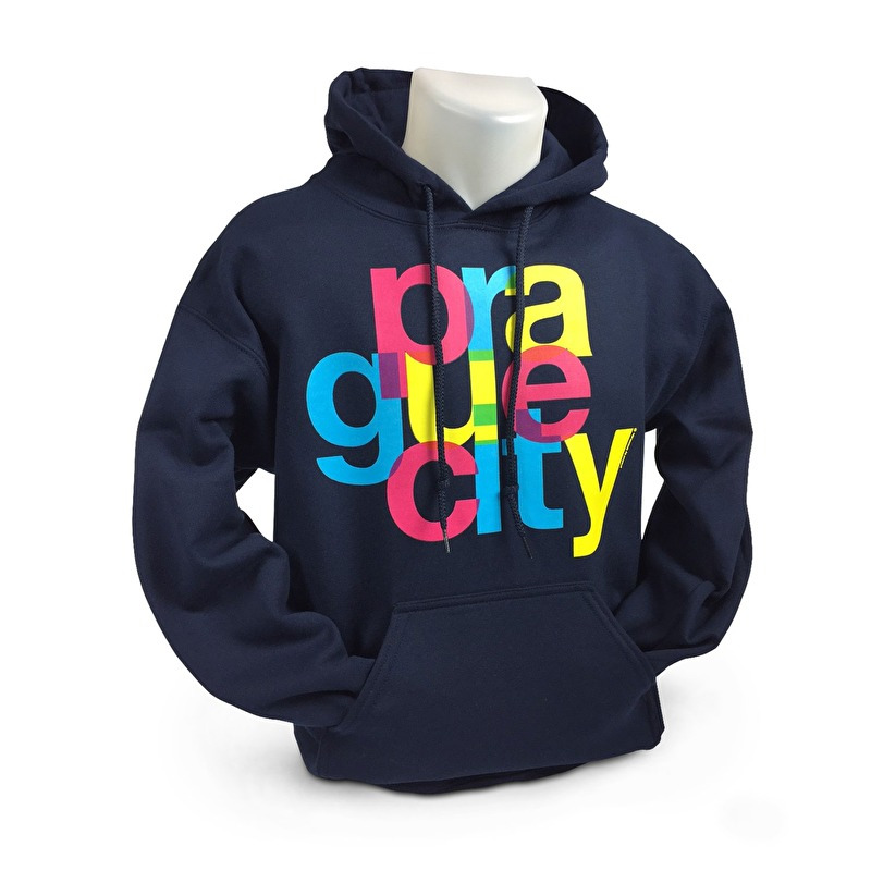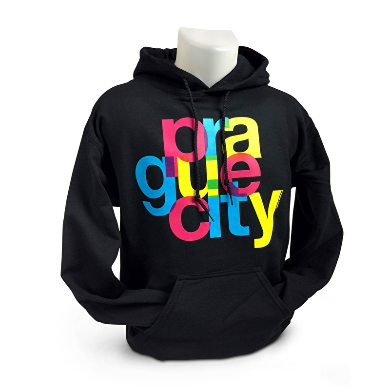 Motivem mikiny je barevný potisk Prague City.
