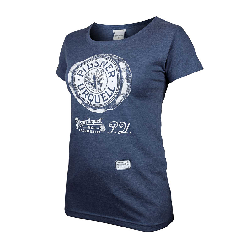 Dámské modré tričko s potiskem s obrázkem pečeti Plzeňského Prazdroje.