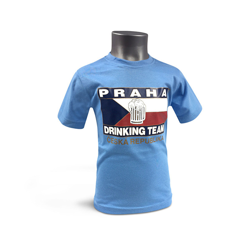 Dětské kvalitní bavlněné tričko s oblíbeným motivem Drinking Team a vlajkou České republiky. Toto tričko nabízíme ve barvě červené a světle modré.