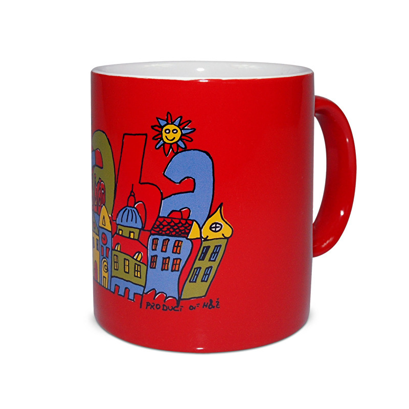 Keramický hrnek na čaj i kávu s kresleným obrázkem pražských domů a nápisem Praha.