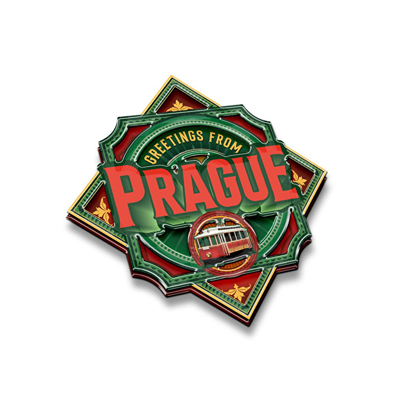 3D magnet „Greetings from Prague“ s motivem ikonické pražské tramvaje.