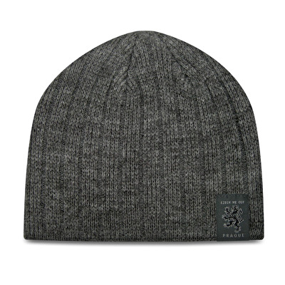 Tmavě šedá zimní čepice se štítkem s motivem Českého lva.