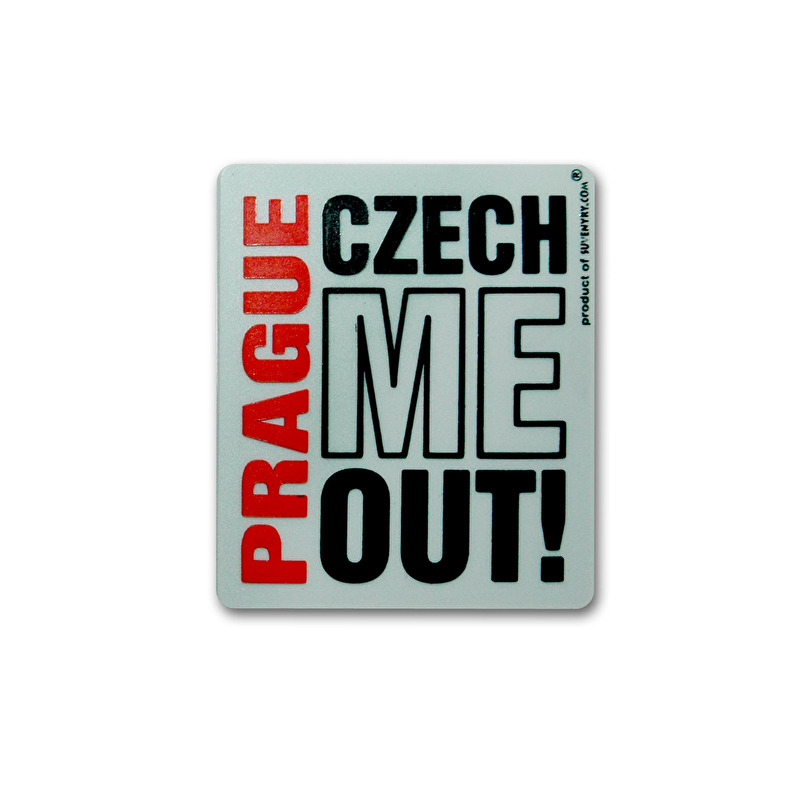 Gumový magnet v barvě šedé s oblíbeným motivem Czech Me Out, který znamená v překladu „Vyzkoušej mě“.