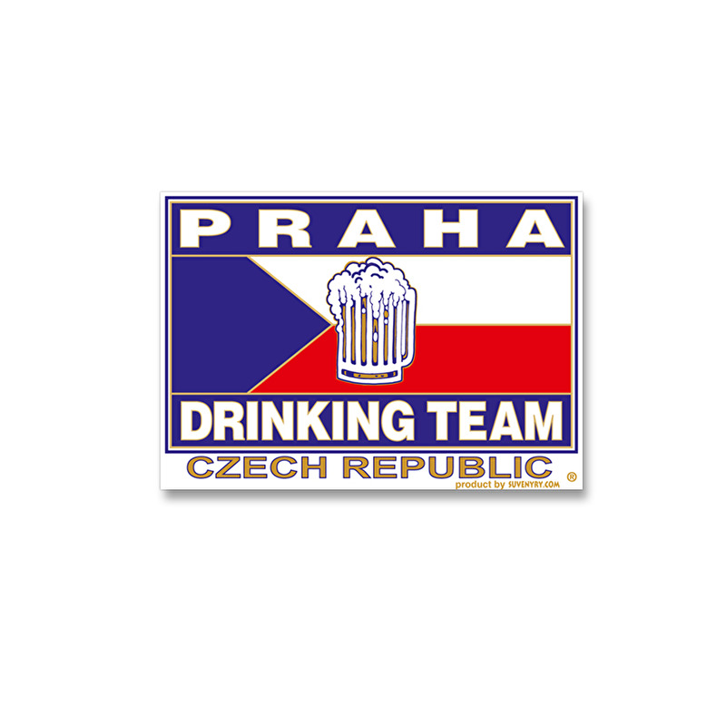 Samolepka s oblíbeným motivem Drinking Team a vlajkou České republiky.