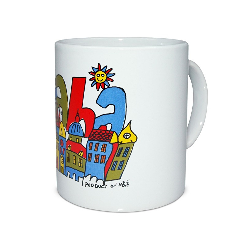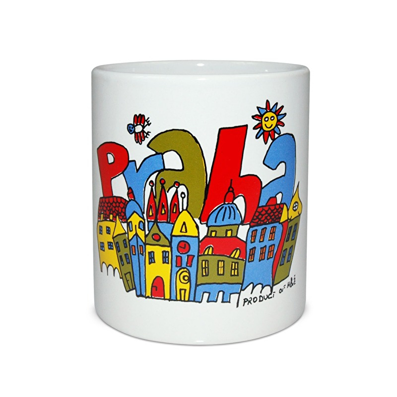 Keramický hrnek na čaj i kávu s kresleným obrázkem pražských domů a nápisem Praha.