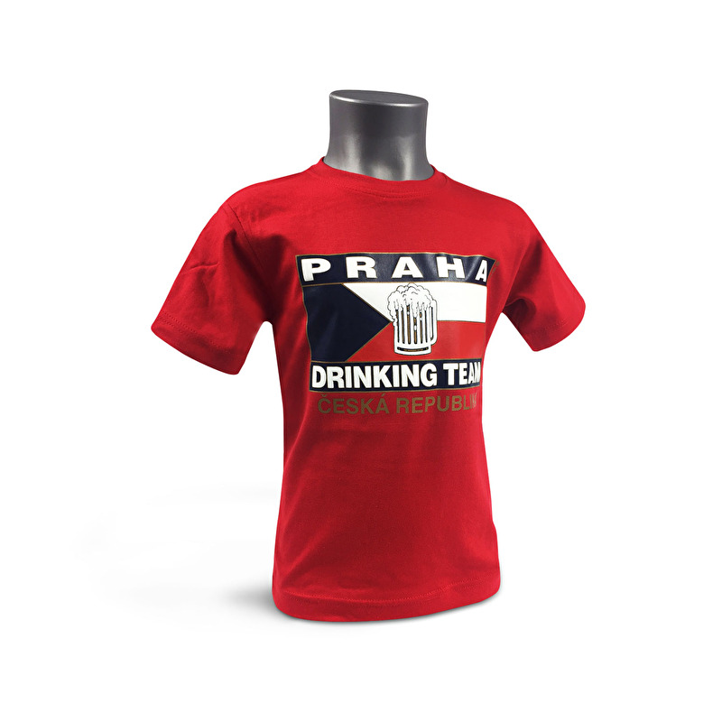 Dětské kvalitní bavlněné tričko s oblíbeným motivem Drinking Team a vlajkou České republiky. Toto tričko nabízíme ve barvě červené a světle modré.