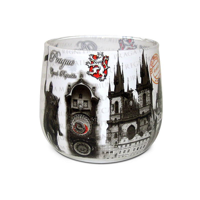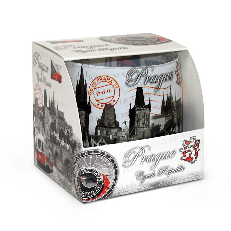 Voňavá svíčka ve skle je zabalena v krabičce z papíru se stejným motivem jako je potisk svíčky.