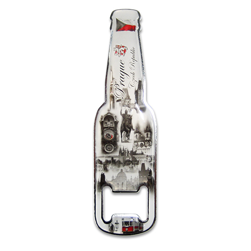 Metall-Magnet-Öffner Bier mit dem Prag-Motiv und Aufschrift Prague.