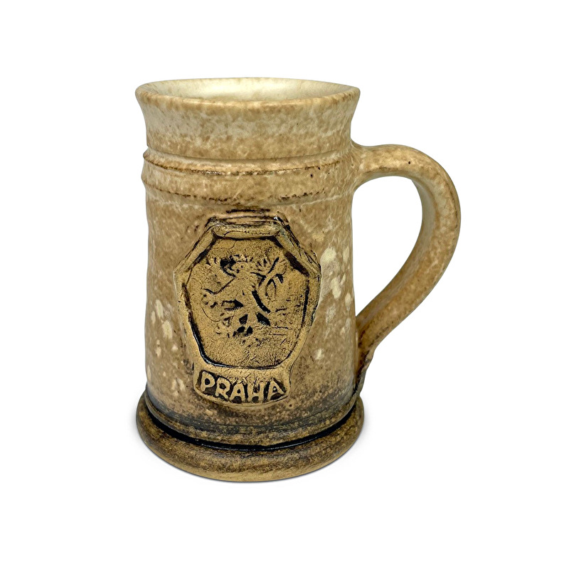 Klein keramik-Humpen mit Glasur, handgemacht, mit einer Mischung von Prag-Motiven.