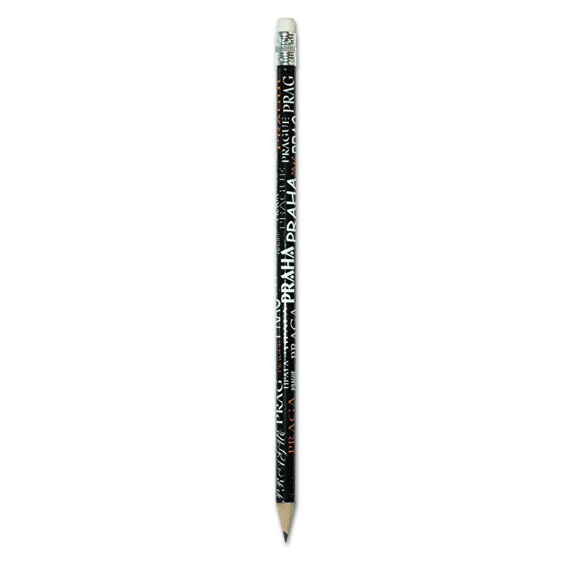 Gewöhnlicher Bleistift mit Radiergummi mit Aufschriften.