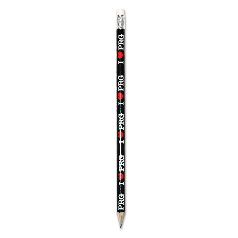 Gewöhnlicher Bleistift mit Radiergummi mit der Aufschrift I love PRG.