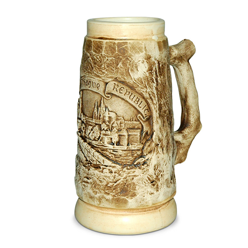 Keramik-Humpen mit Glasur, handgemacht, mit einer Mischung von Prag-Motiven.