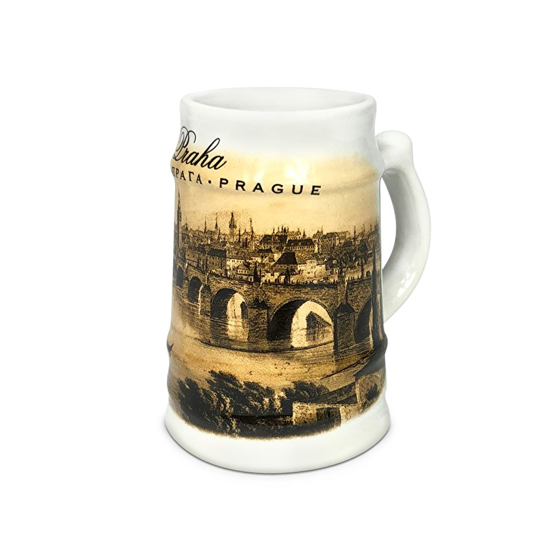 Porcelain tankard-shaped miniature with the motif of brown Prague.