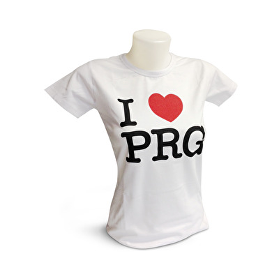 Ladies‘ cotton T-shirt with "I love PRG" motif.