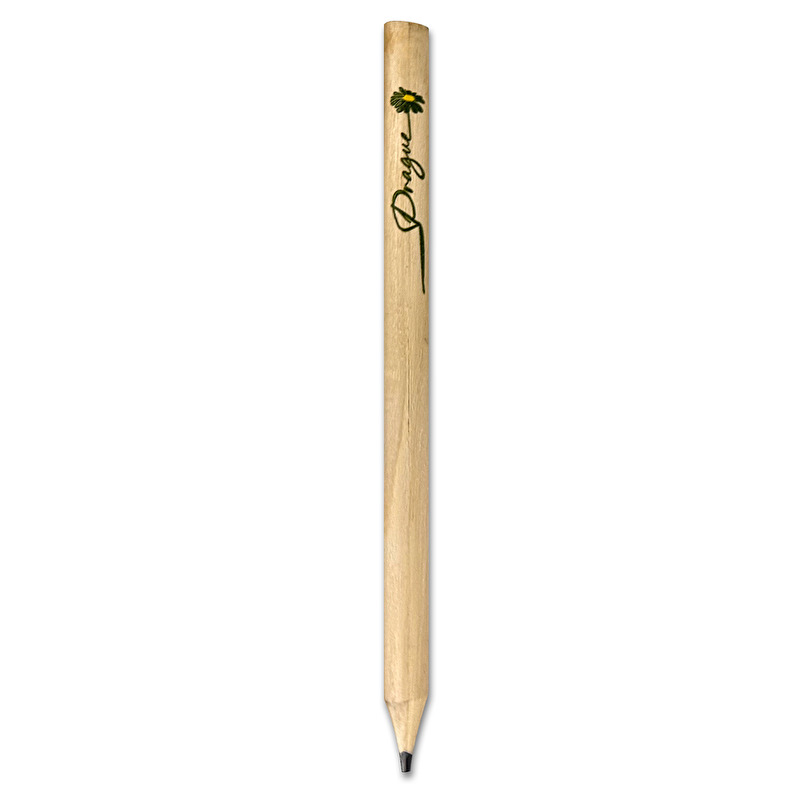 Practical wooden pencil with "Prague" printed on it and a green daisy motif. Ideal as a souvenir or for everyday use.
