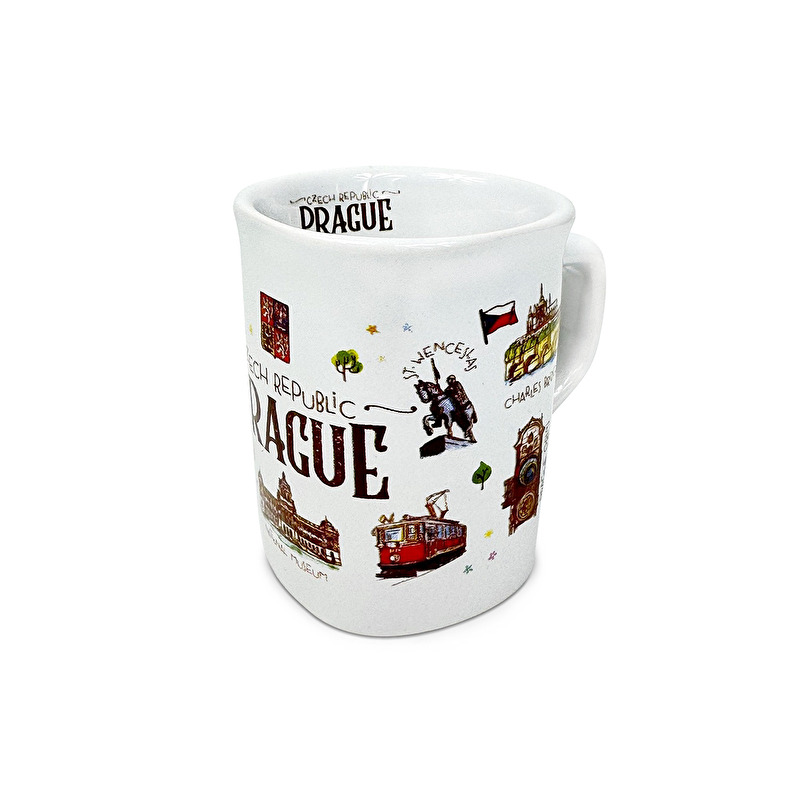 Decorated with iconic Prague symbols such as a traditional tram, historical landmarks and the statue of St. Wenceslas, it makes a lovely souvenir or gift. Its compact size is perfect for espresso or small coffee.