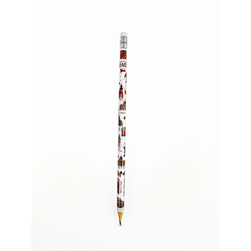 The pencil features detailed illustrations of Prague's most famous landmarks, such as Prague Castle and Charles Bridge.